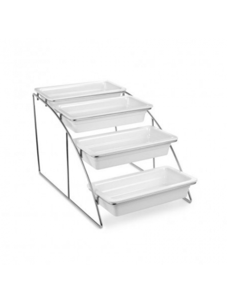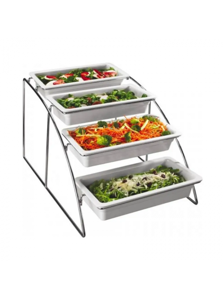 Expositor em inox / aço inoxidável para buffet. Tem 4 compartimentos para recipientes GN 1/3. Recipientes não incluídos.Ficha Informativa