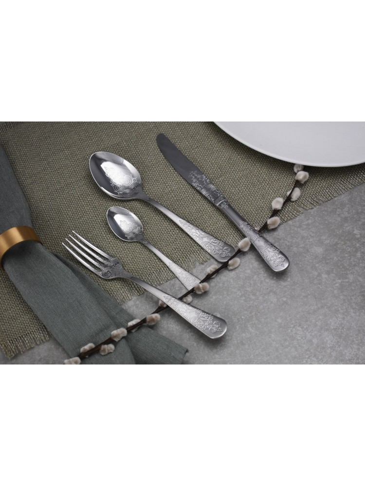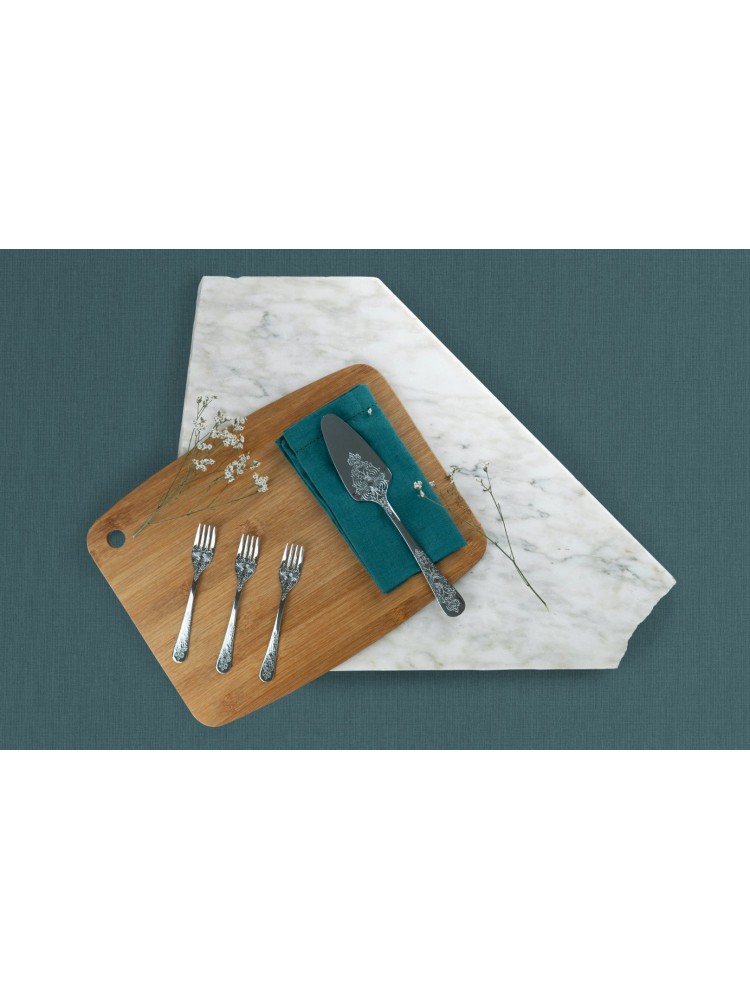 A coleção Antique destaca-se pelo seu padrão ornamental e exuberante, que confere à sua mesa uma elegância eterna. É ideal para decorar a sua mesa nos momentos mais especiais. Feito em: Inox 18/10 com acabamento brilhante.