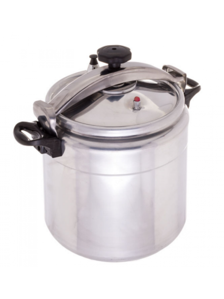 Panela de pressão adequada para utilização profissional. Leve, robusta e durável. Alia economia de tempo e menor consumo deenergia. Inclui válvula rotativa de saida de vapor e válvula de segurança. Com pegas de baquelite, resistentes ao calor, com fixação reforçada.Pressão: 50 KPAPressão segurança 1: 80-100 KPAPressão segurança 2: 110-130KPA