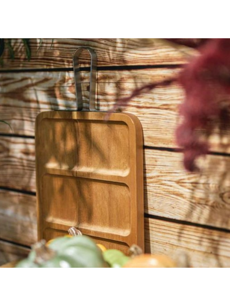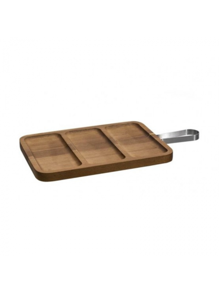 Tábua de madeira de acácia com 3 Divisões e pega em metal.