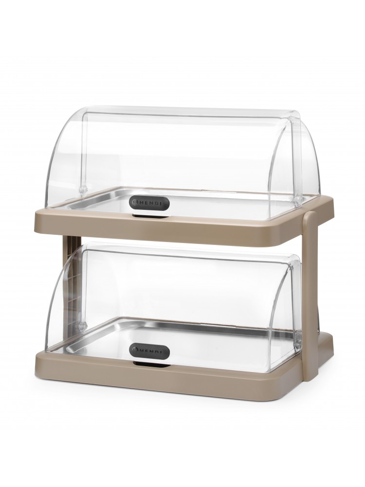 O Expositor Roll Top UNIQ criado pelo renomado designer holandês Robert Bronwasser, combina design moderno e premiado com funcionalidade profissional, ideal para buffets, catering e hotelaria. Mantém doces e snacks frescos, apresentáveis e fáceis de servir, garantindo exposição elegante e prática em qualquer serviço.
