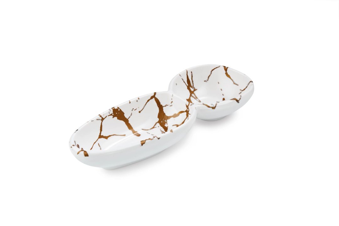 Prato Pujadas com 2 Compartimentos oferece uma solução prática e elegante para servir refeições que necessitam de separação. Fabricado em melamina de alta qualidade, este prato constitui uma alternativa leve à porcelana, sem comprometer a estética nem a durabilidade. Os dois compartimentos permitem porcionar diferentes alimentos de forma organizada, enquanto o design dourado acrescenta sofisticação à sua mesa. Resistente a uma ampla gama de temperaturas, de -20 ºC a 70 ºC (-4 ºF a 158 ºF), é ideal para servir pratos quentes e frios com facilidade. O seu design versátil e construção robusta tornam-no uma escolha fiável para qualquer estabelecimento de restauração.