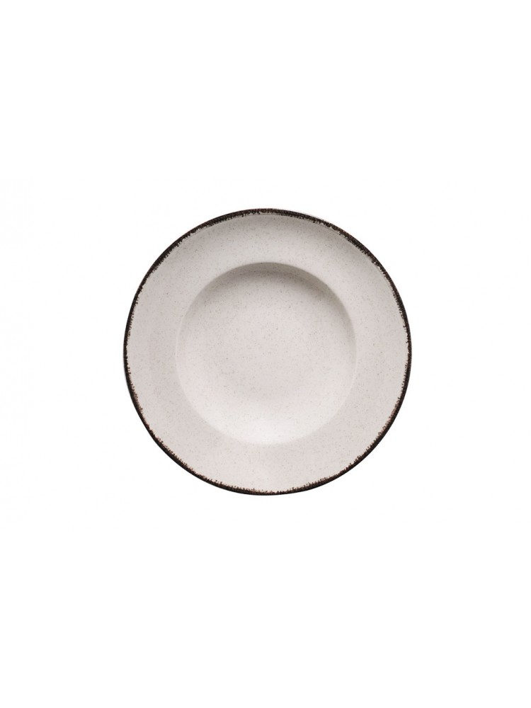 A coleção Pearl combina um design nostálgico com um toque de sofisticação, inspirando-se em padrões delicados e aros que evocam tempos ancestrais. Este prato pasta, com 28 cm de diâmetro e acabamento em porcelana bege, reflete a perfeita harmonia entre tradição e modernidade.