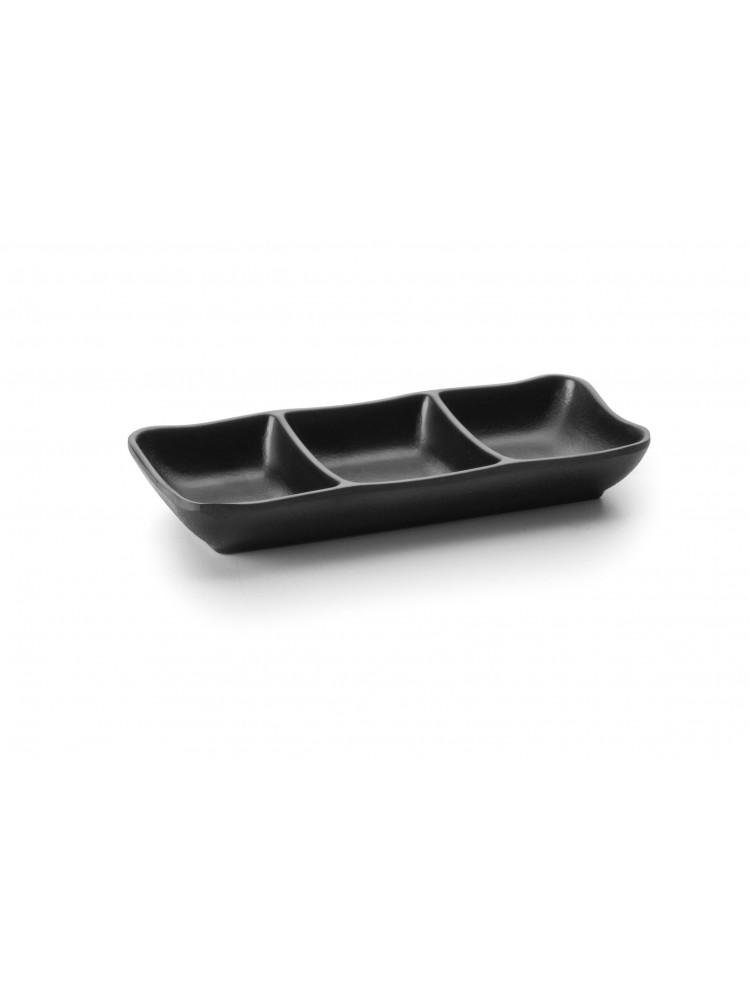 Apresentamos a Bandeja de 3 Divisórias em Melamina Preta, a peça perfeita para elevar a apresentação dos seus aperitivos. Combinando funcionalidade inovadora com um design moderno, esta bandeja é o complemento ideal para suas ocasiões especiais e encontros descontraídos.Principais Características da Bandeja de 3 Divisórias em Melamina:Elegância em Preto: A cor preta sofisticada da bandeja acrescenta um toque de classe e refinamento a qualquer ambiente. Seja para um jantar formal ou uma reunião casual com amigos, esta bandeja destaca-se como um item de destaque.Divisórias Inteligentes: Com três divisórias cuidadosamente projetadas, esta bandeja oferece uma maneira organizada de apresentar uma variedade de aperitivos. Mantenha petiscos, frutas e nozes separados, adicionando um toque de ordem à sua mesa.Material Durável: Fabricada em melamina de alta qualidade, esta bandeja é resistente a arranhões, durável e pronta para suportar o uso diário. Desfrute da confiança de ter um produto que combina estilo com longevidade.Facilidade de Limpeza: A superfície da melamina é fácil de limpar, poupando-lhe tempo e esforço. Após o uso, basta um pano húmido para deixar a bandeja impecável novamente.