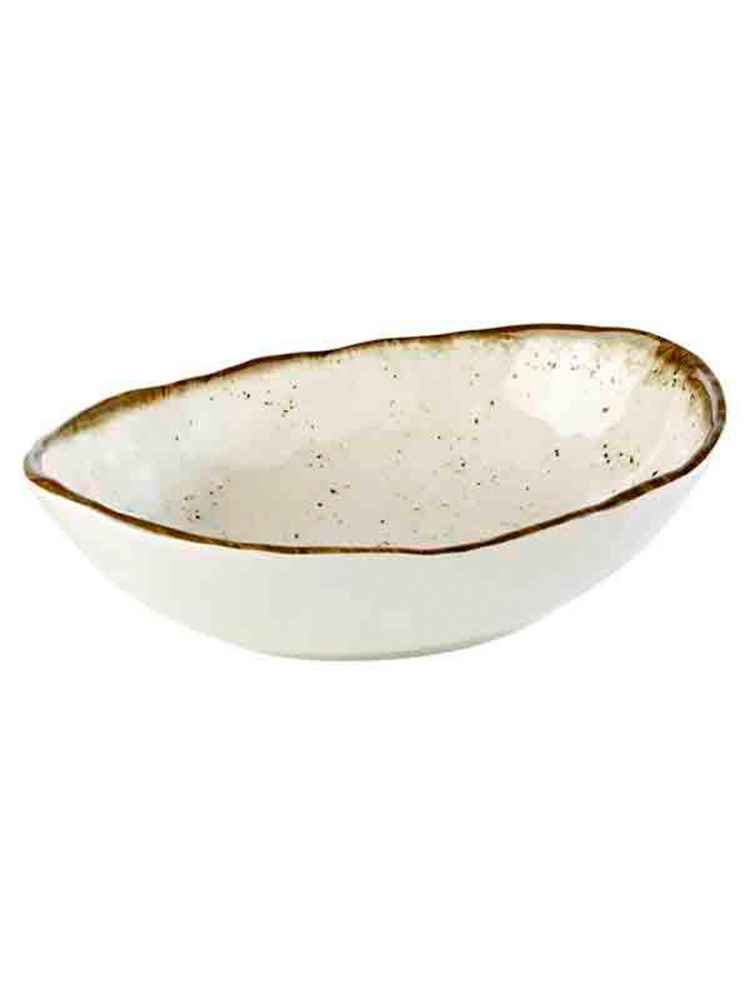 Taça / Bowl oval em melamina, com comprimento de 28,5cm. Material mais resistente a quedas e riscos. Coleção Stone Art.Ficha Informativa