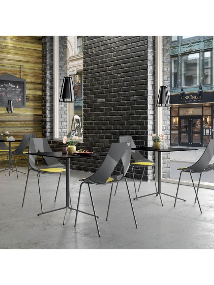 Nastro é um design elegante e contemporâneo que apresenta uma estrutura fina e curva, frequentemente feita de metal, e uma assentada ou encosto em forma de fita, que dá à cadeira sua aparência única e distintiva.