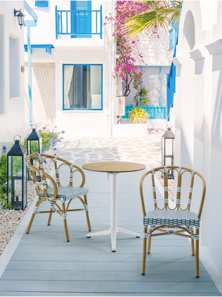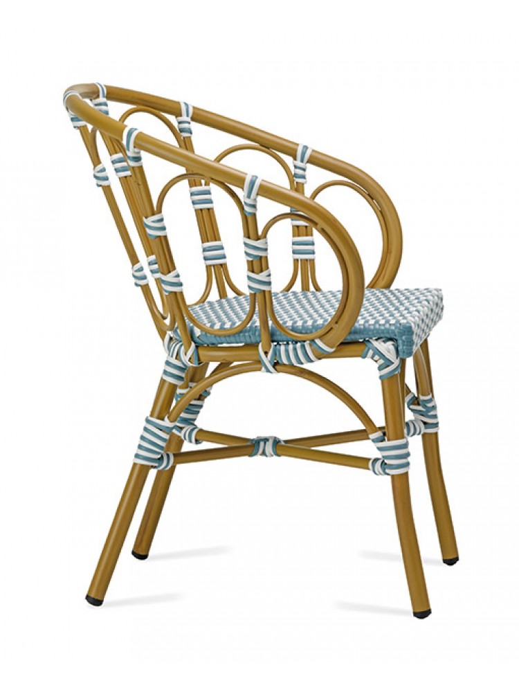 A Cadeira Porto Rico com Braços une conforto, resistência e elegância em um design versátil para ambientes externos. A sua estrutura em alumínio garante leveza e durabilidade, enquanto o assento em rattan azul proporciona um toque moderno e acolhedor. Com encosto e apoio de braços, oferece maior ergonomia e conforto para o uso prolongado.